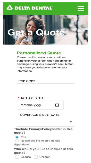 82%View our cost-effective choices for individual dental insurance and get an instant online quote. Delta Dental - the largest dental network in the US.