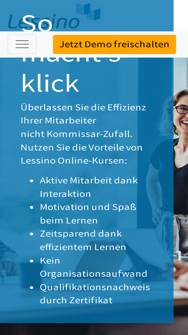 89%so macht's klick. lernen sie mit den online-kursen von lessino. anschauliche lernfilme und interaktive übungen führen sie zum erfolg.