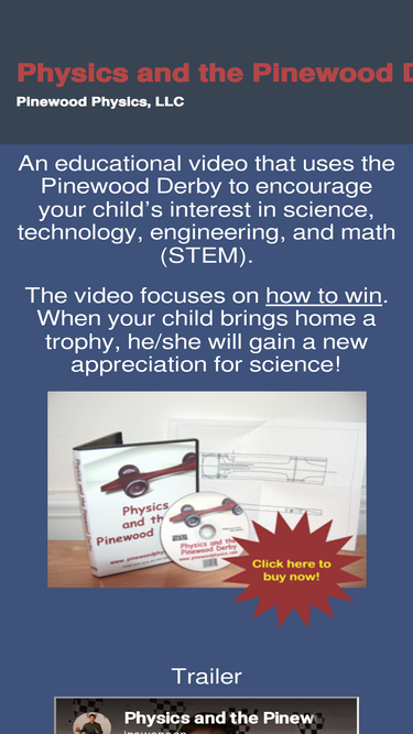 100%physics and the pinewood derby is an educational film with two aims: (1) get children excited about math and science through the pinewood derby and (2) help cub scouts build a fast pinewood derby car. we like to think that we teach not just the *how*, but also the *why* of pinewood derby car racing.