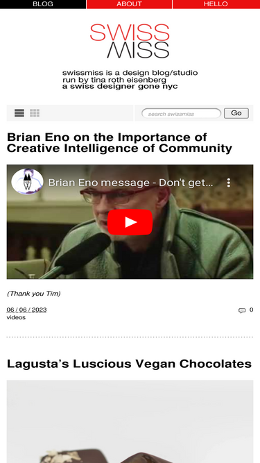 88%swissmiss is an online garden (aka design blog) run by Tina Roth Eisenberg, a Swiss designer gone NYC.