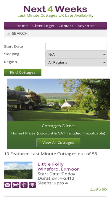 96%Last Minute Cottages, book direct, low rates, self catering late availability, late deals and short breaks in the Next 4 Weeks