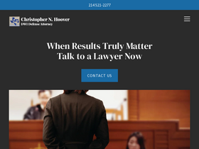 100%"Collin County DWI Attorney. Serving Frisco, Plano, Allen and throughout the Dallas Metro area. The Law Office of Christopher N. Hoover. Former Decades of Experience. Call 214-521-2277. Free Initial Consultation."