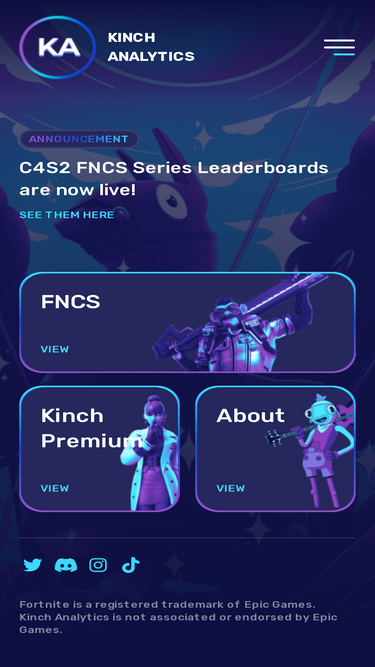 100%Kinch Analytics provides FNCS leaderboards, Stats and Analysis for the Competitive Fortnite community