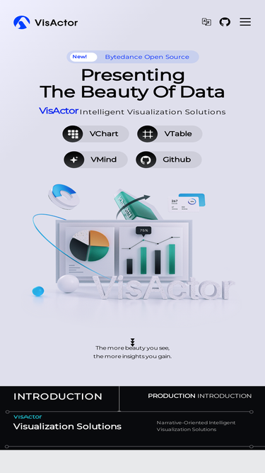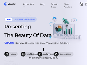 86%visactor 是从字节跳动大量可视化场景沉淀而来。在覆盖常规可视化场景的同时,以叙事可视化为新的着力点,以智能可视化为目标,形成了包括渲染引擎、可视化语法、数据分析组件、图表组件、表格组件、gis组件、图可视化组件、智能组件等多个模块以及周边生态组成的可视化解决方案。