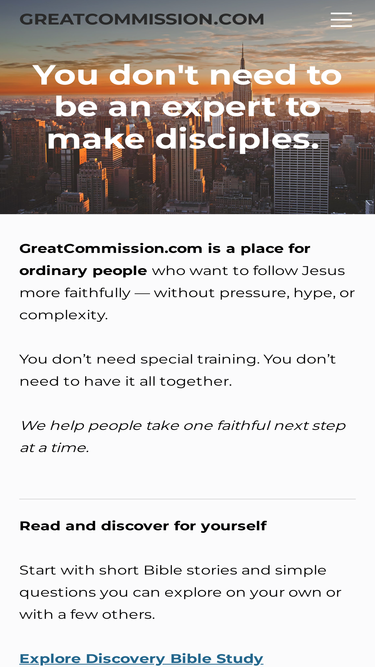 De acordo com os dados de visitas mensais da Similarweb, o principal concorrente do dmmsfrontiermissions.com em março 2026 é greatcommission.com. O segundo site mais semelhante ao dmmsfrontiermissions.com é griffinpauljackson.com, e fechando o top 3 está o northheightscoc.org.