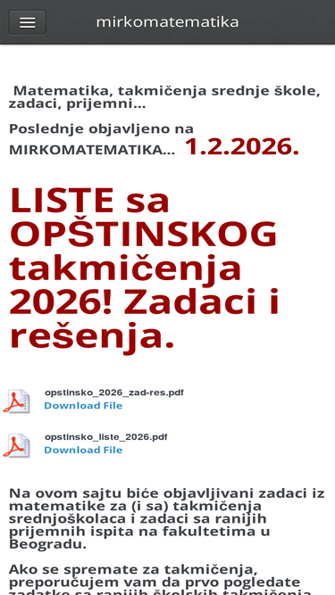 Os outros cinco concorrentes na lista dos 10 principais são matematiranje.in.rs, mirkomatematika.weebly.com, medicinska-cacak.edu.rs, osjosifpancic.rs e filoloska.edu.rs.
