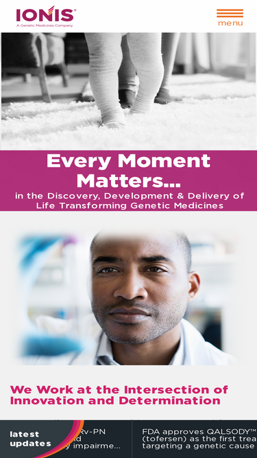 100%Discover how Ionis Pharmaceuticals is advancing RNA and DNA-targeted medicines to revolutionize treatment and improve lives. Join us on our mission to transform healthcare.