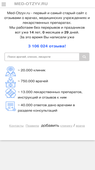 крупнейший сайт отзывов о врачах и клиниках россии. более четырёх миллионов честных отзывов пациентов. поделитесь своим мнением о лечении - внесите вклад в народный рейтинг!