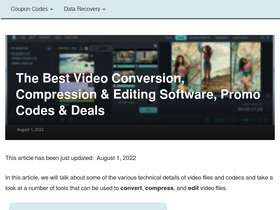 67%the best video conversion, compression & editing software, promo codes & deals january 4, 2021 this article has been just updated: january 4, 2021 in this article, we will talk about some of the various technical details of video files and codecs and take a look at a number of tools that can be used […]