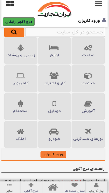 29%ایران تجارت درج آگهی رایگان در زمینه آپارتمان، زمین، ویلا، خودرو نیازمندیهای کامپیوتر و موبایل، آموزش، استخدام، شهرک های صنعتی و مشخصات فنی خودروها