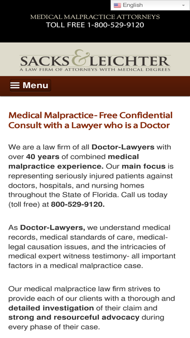 100%At Sacks & Leichter we are Medical Malpractice Lawyers who are Doctors to evaluate your medical malpractice case.