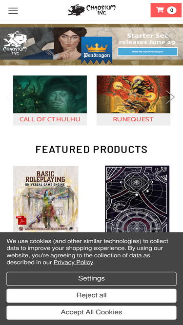 75%The home of Call of Cthulhu, RuneQuest, Pendragon, 7th Sea, and Questworlds. Your gateway to mythic adventure.