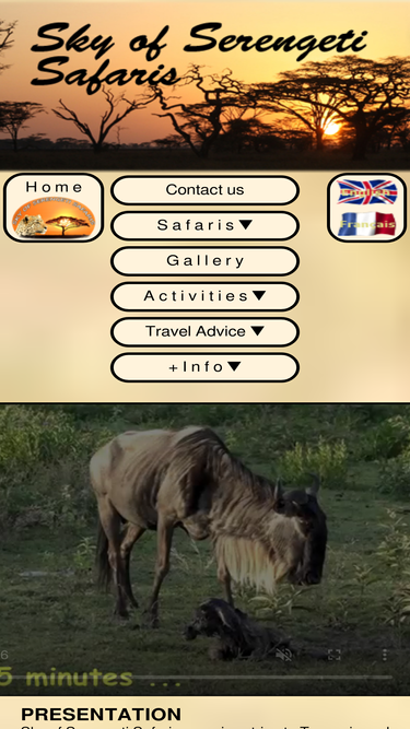 Sky of Serengeti Safaris website home page in Tanzania