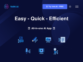 92%Unlock the power of AI for all your creative needs. Our free all-in-one platform empowers you with AI tools for text, writing, image, audio, and video.