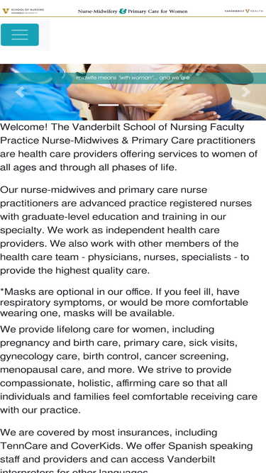 100%vanderbilt faculty practice nurse-midwives and primary care in middle tennessee. maternity care and labor support at our birth center at vanderbilt university medical center. primary care practitioners in both clinics.