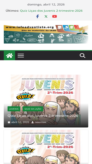 O ebdslide.com.br ocupa o posto de 4º site mais semelhante ao ebdemfoco.com e o infoadventista.org aparece em quinto lugar em março 2026.