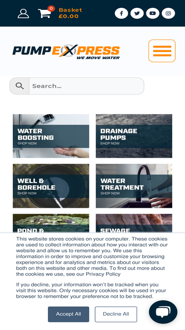 99%Pump Express Account page - Manage your orders, delivery details, view and download invoices.