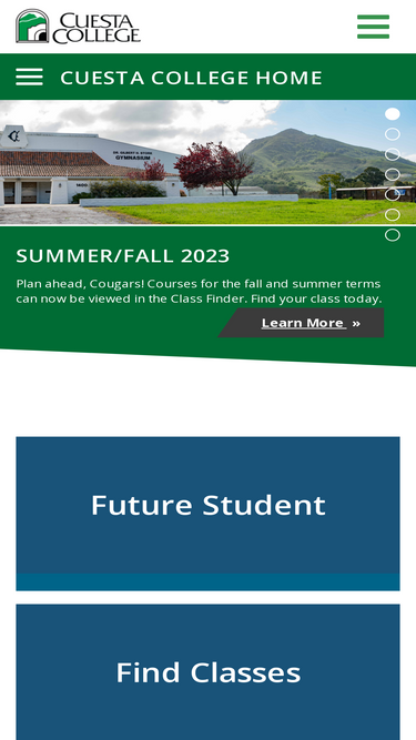 64%cuesta college offers classes at the main campus in san luis obispo, the north county campus in paso robles, and the south county center in arroyo grande.