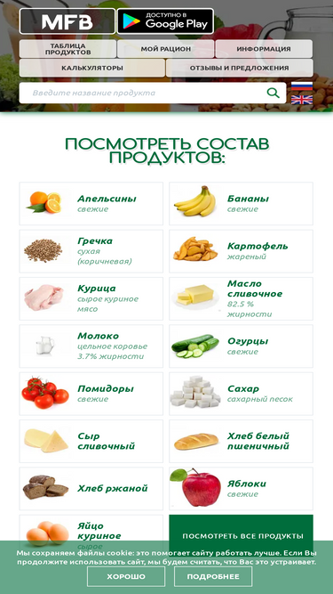 81%сайт про здоровое питание. таблицы калорийности продуктов. витамины, микроэлементы. полный список пищевых добавок с описанием. анализаторы рецептов и продуктов. диеты, статьи. форум.