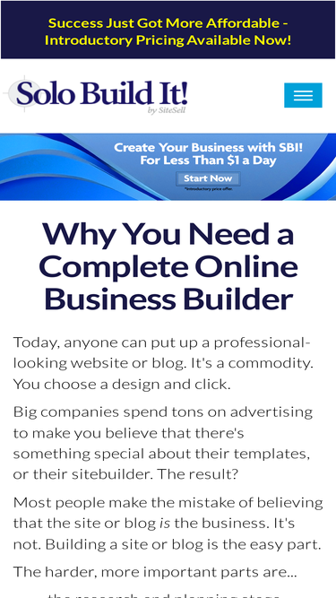 82%Only Solo Build It! (SBI! and SBI! for WP) enable solopreneurs to build profitable online businesses, NOT just a site or blog.