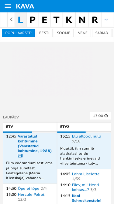 35%Suurim telekava internetis. Üle 160 erineva kanali. ETV, Kanal2, TV3, TV6. Vali avalehele lemmikkanalid ja jaga häid saateid sõpradega! Filmid, sarjad, sport!