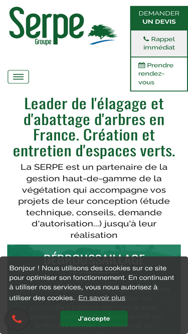 59%la serpe est votre spécialiste de l'élagage, l'abattage d'arbres ou de palmiers, le débroussaillage, le génie écologique, l'entretien des espaces verts et la création des espaces verts sur toute la france avec 35 sites