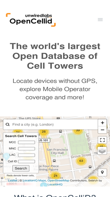 opencellid is the largest open database of cell towers & their locations. you can geolocate iot & mobile devices without gps, explore mobile operator coverage and more!