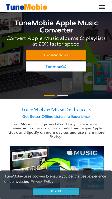 100%tunemobie offers apple music converter and spotify music converter to help you convert apple music and spotify to mp3/m4a and enjoy your favorite songs on any devices.