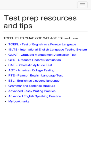 a test prep site for toefl ielts gmat gre sat act pte esl etc to help english learning and get better marks in exams.