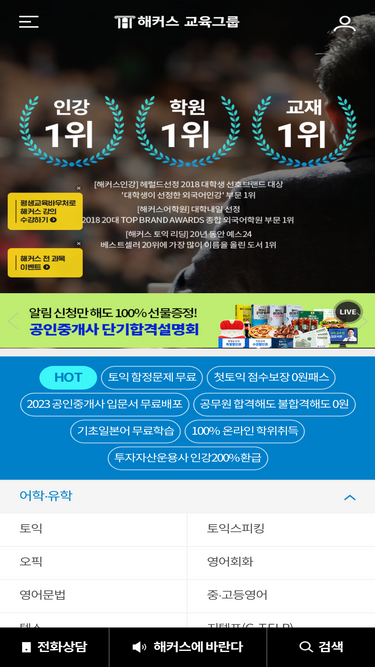 외국어학원 1위, 영어, 공무원, 금융 자격증, 유학 분야 전문 교육그룹