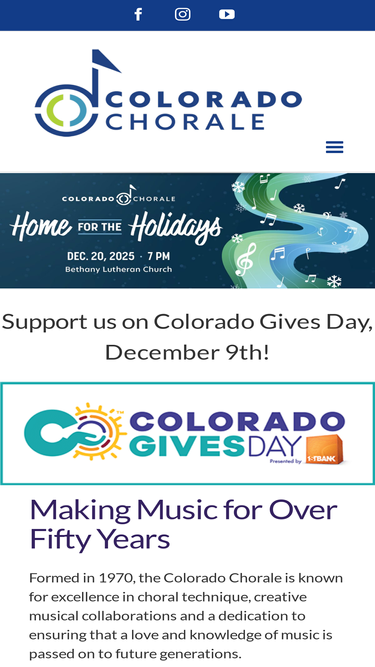 98%Partner with the Colorado Chorale The Chorale has a range of partnership levels from onstage acknowledgement to program advertising and other concert visuals benefiting your company. Partnering with the Chorale gives you star billing among the hundreds of people that attend our concerts each year. Become a corporate partner and proclaim your dedication to arts [...]