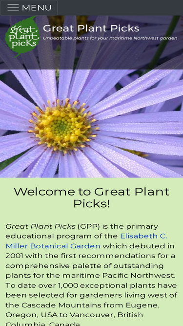 55%great plant picks is an educational program of the elisabeth c. miller botanical garden, recommending outstanding plants for gardeners living west of the cascade mountains from eugene, oregon, usa to vancouver, british columbia, canada.