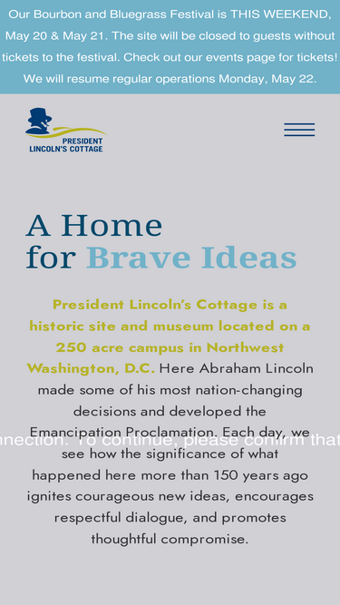 75%Contact the team at Contact President Lincoln’s Cottage in Washington D.C. to learn more about current exhibits, opportunities, ticket prices and more.