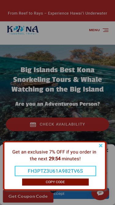 89%Journey to three different snorkeling locations, explore sea caves, and see the Kona Coast as few do.