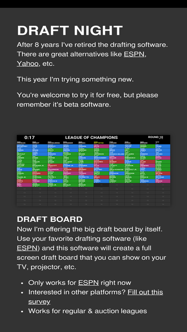Os outros cinco concorrentes na lista dos 10 principais são rhinosoftware.com, rotorank.com, fandraft.com, draftnight.com e coachbox.com.