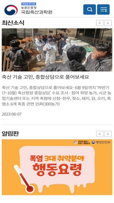 96%동물유전자원의 다양성확보, 고부가가치 축산물 개발, 축산물 안전생산기술 개발, 축산기술보급으로 지속가능한 축산 실현에 앞장서는 국립축산과학원입니다.