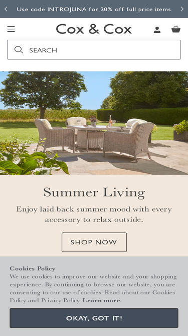 98%Style your home with beautiful furniture, home décor, lighting and more from Cox & Cox. With 20% off your first order, browse the range online today.