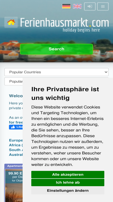 Im Ferienzentrum.de können Sie Ferienwohnungen und Ferienhäuser günstig mieten oder vermieten. ✔ ohne Gebühr buchen ✔ Ferienzentrum.de seit 1999