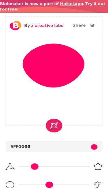 87%Make organic SVG shapes for your next design. Modify the complexity, contrast, and color, to generate unique SVG blobs every time.