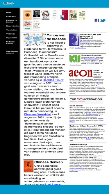75%een website over ethiek met links, thema's, tijdschriften, boeken, boekbesprekingen, inhoudsopgaven, berichten en organisaties rond ethiekonderwijs voor een breed publiek