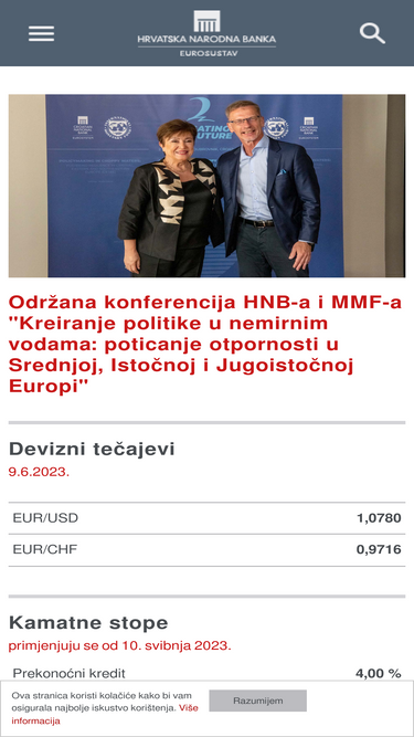 Web stranica Hrvatske narodne banke, središnje banke Republike Hrvatske