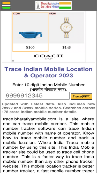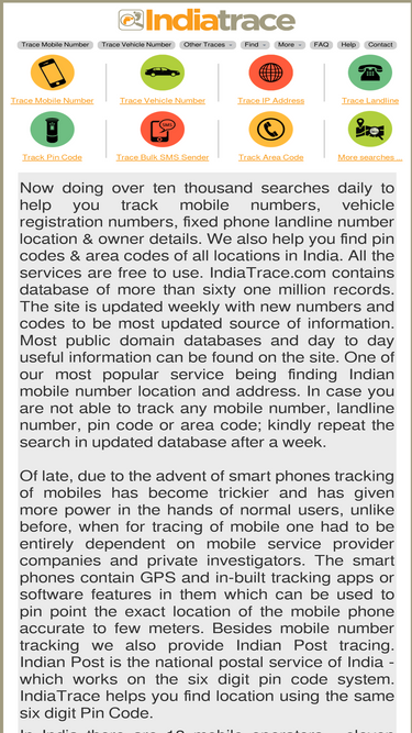 78%Trace any Indian Mobile Number Location, Locate service Provider, state/circle, signalling & other information.