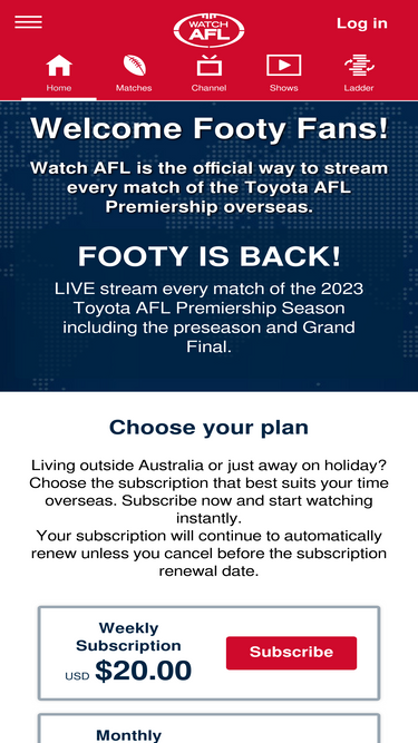 100%watch australian football matches live and online with a watch afl global pass. see every afl match live & on demand plus the 24/7 fox footy channel.