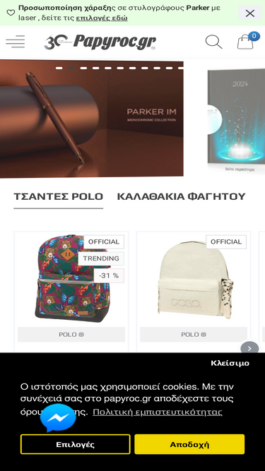 100%Το Papyroc.gr είναι το ηλεκτρονικό κατάστημα του Βιβλιοχαρτοπωλείου πάπυρος. Εδώ θα βρείτε Λογοτεχνικά Βιβλία , Σχολικά είδη , Είδη Γραφείου , Είδη Ζωγραφικής , Χαρτικά και Δώρα! Το βιβλιοπωλείο Πάπυρος κλείνει τα 30 χρόνια παρουσίας του στο χώρου του Βιβλίου και των χαρτικών ειδών και το γιορτάζει με τη δημιουργία ενός σύγχρονου ανεξάρτητου ηλεκτρονικού καταστήματος.To Papyroc.gr ανανεώνεται κάθε 24 ώρες με νέα προϊόντα και προσφορές.