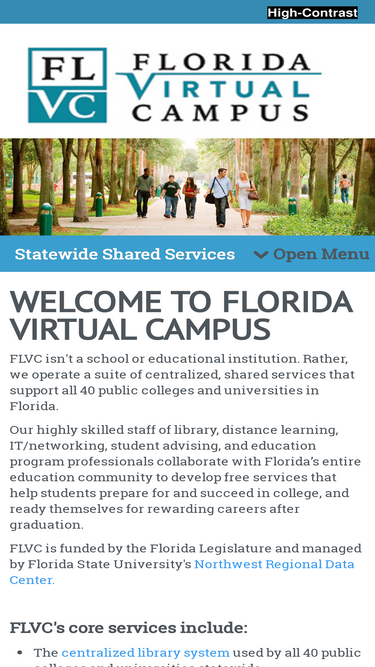 100%The services offered by FLVC are an integral part of Florida’s education community. FLVC provides critical educational support services utilized by all public postsecondary institutions within the Florida College System (FCS), the State University System (SUS), and K-12 school districts.