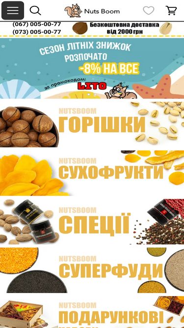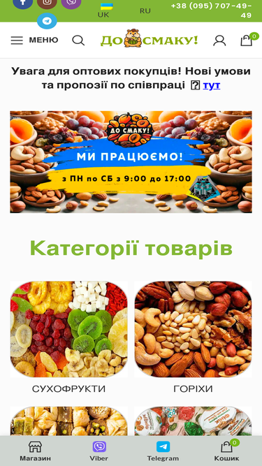 48%Інтернет магазин горіхів та сухофруктів До Смаку! ⭐ найкраща ціна на сухофрукти, горіхи, східні солодощі, спеції, товари з Європи та ін.