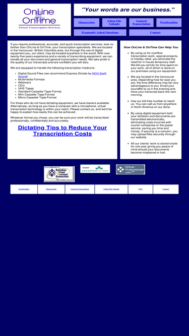 85%OnLine & OnTime, Transcription Services provider for Interview Transcriptions, Conference Call Transcriptions, Webinar Transcriptions, Focus Group Transcriptions in the Vancouver, British Columbia, Canada area