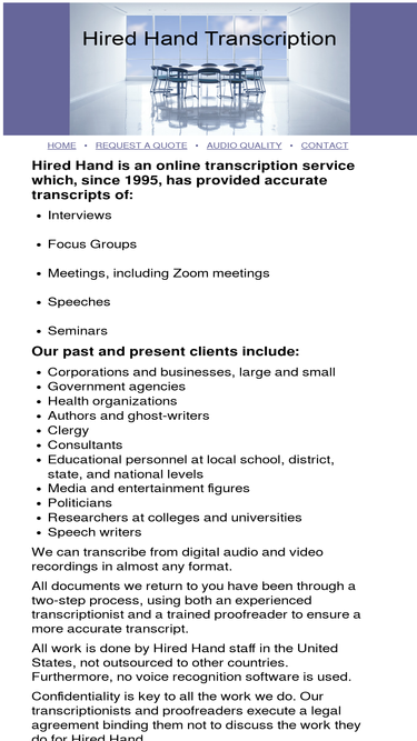 84%Professional transcribers based in Washington, DC, producing fast, accurate, and reliable transcription services since 1978.