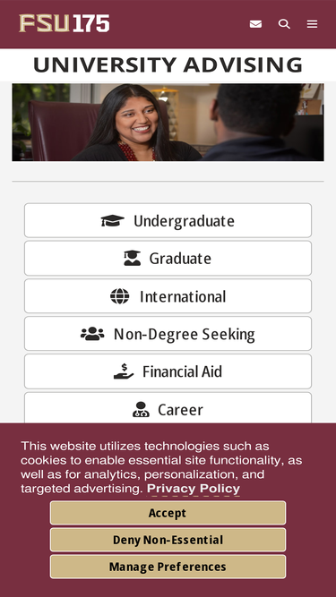 92%The University Advising website outlines academic advising and advisors, and other advising offered at FSU.