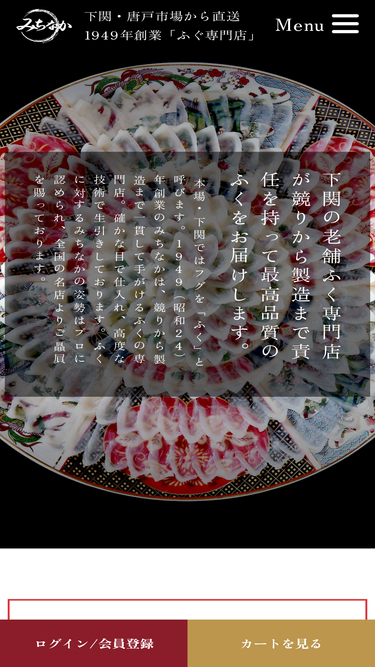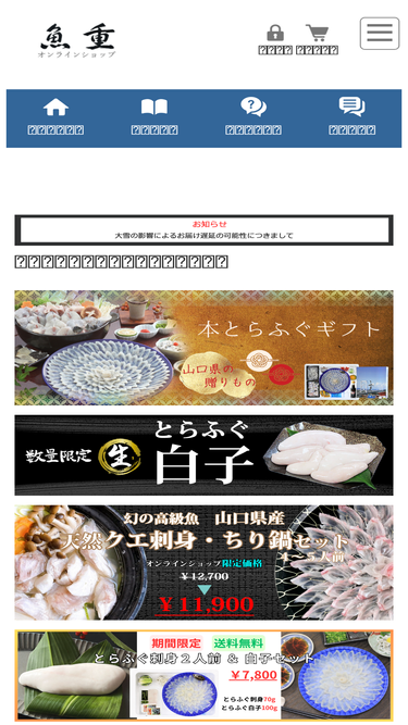 72%【創業65年余】下関ふぐの魚重オンラインショップは、本場下関市に工場を設立し「ふぐ刺身」「ふぐちり」「ふぐの唐揚」「ふぐの一夜干」のほか「はも加工品」「くえ鍋」などを製造・販売している株式会社魚重が運営しているオンラインショップ(通販サイト)です。